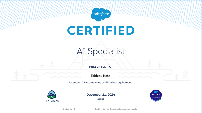 12/22일 Salesforce AI Specialist 시험에 합격했습니다. 👏👏👏