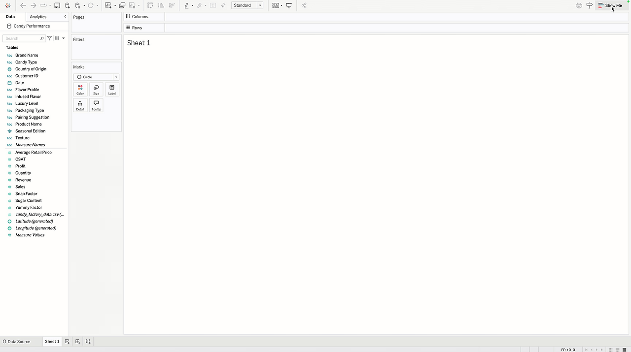 이제는 차트 유형부터 선택해도, Show Me가 적절한 데이터를 자동 추천해서 시각화를 만들어 줍니다.