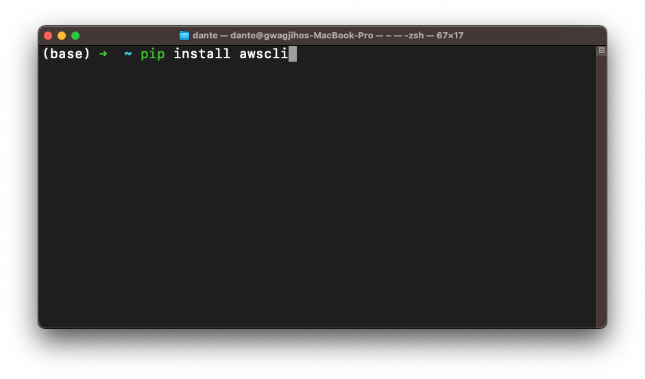 Homebrew가 성공적으로 설치되면 pip과 awscli 등을 설치할 수 있습니다.